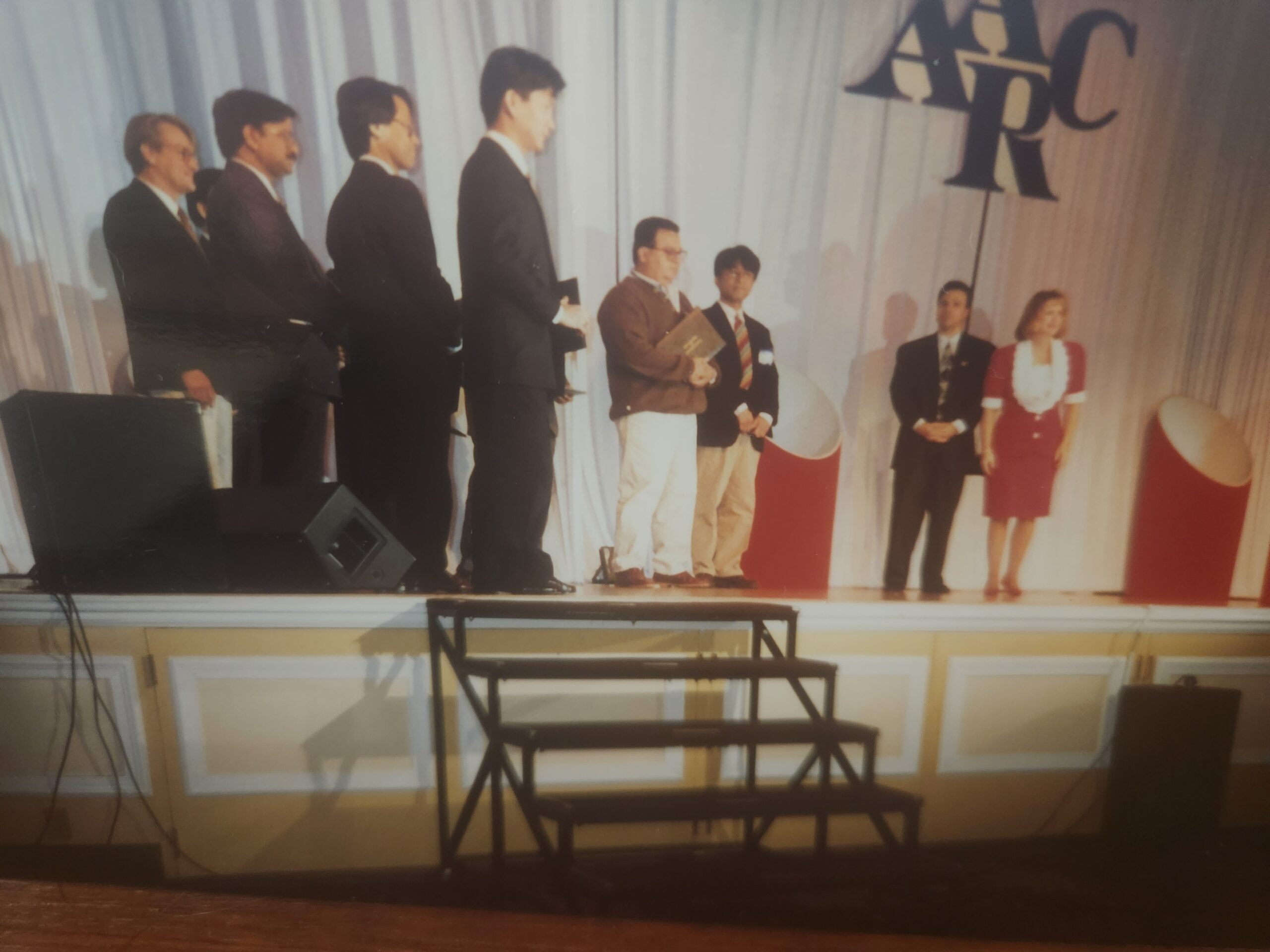 AARC 1993 International Fellows: Lewis, far right, greets the 1993 International Fellows up on stage at the AARC Congress.