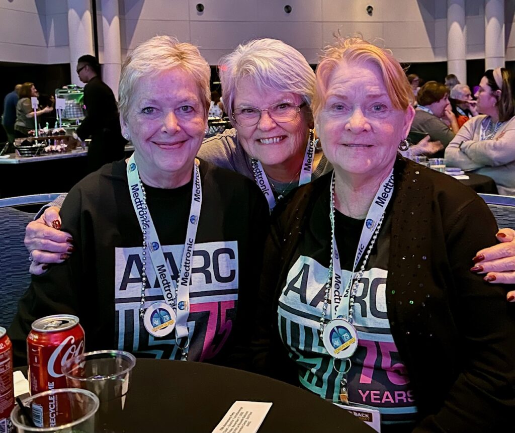 1995 AARC President and AARC Historian Trudy Watson, BS, RRT, FAARC, left, joins AARC 75th Anniversary Committee members Colleen Schabacker, BS, RRT, FAARC, center, and Dianne Lewis, MA, RRT, FAARC, right, at the 75th Anniversary event.