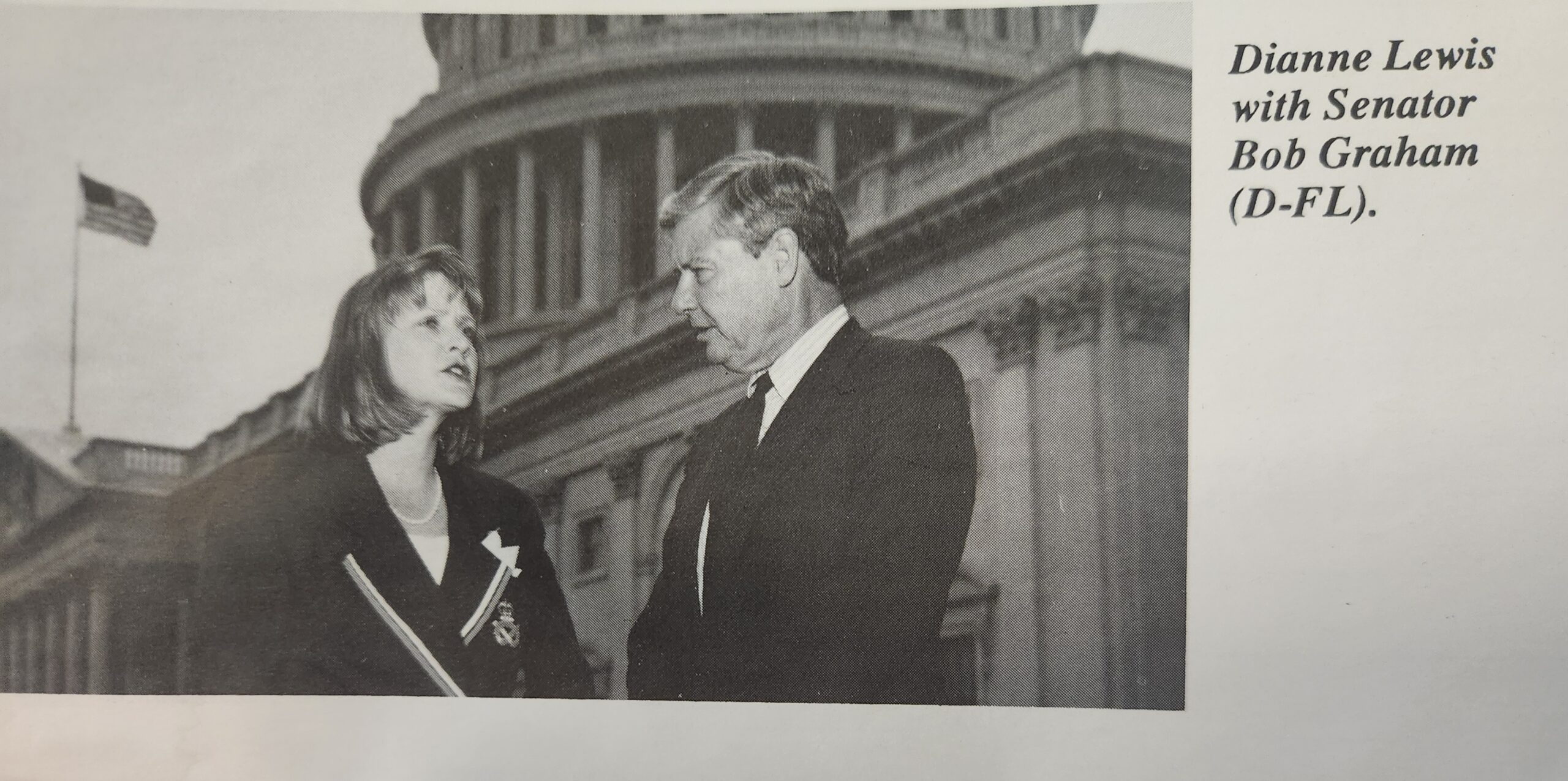 Dianne Lewis speaks with Senator Bob Graham (D-FL) at an AARC Capitol Hill event in 1992.